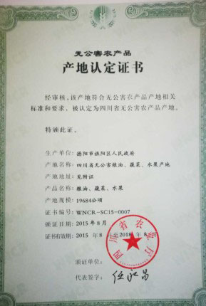 產(chǎn)地認(rèn)證證書